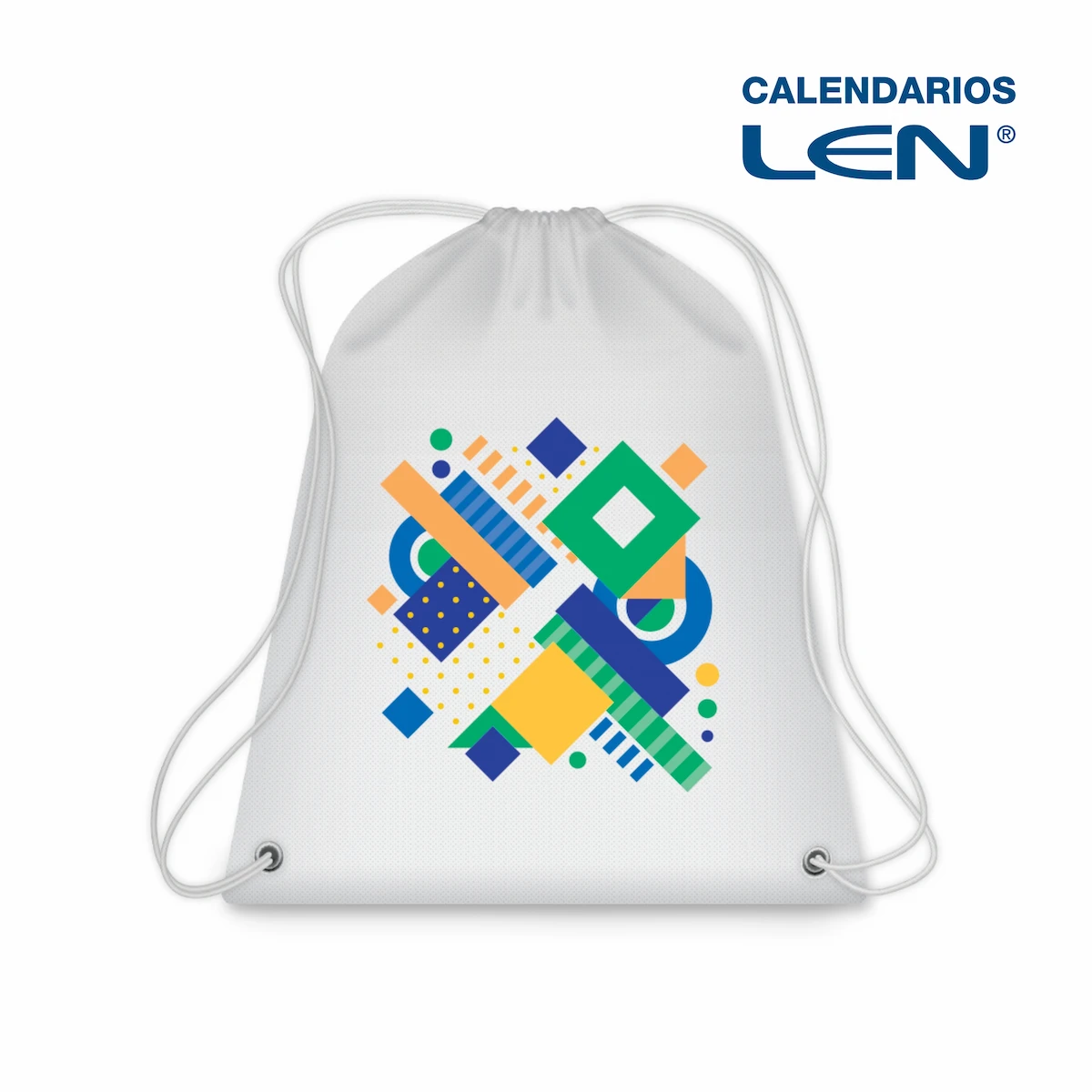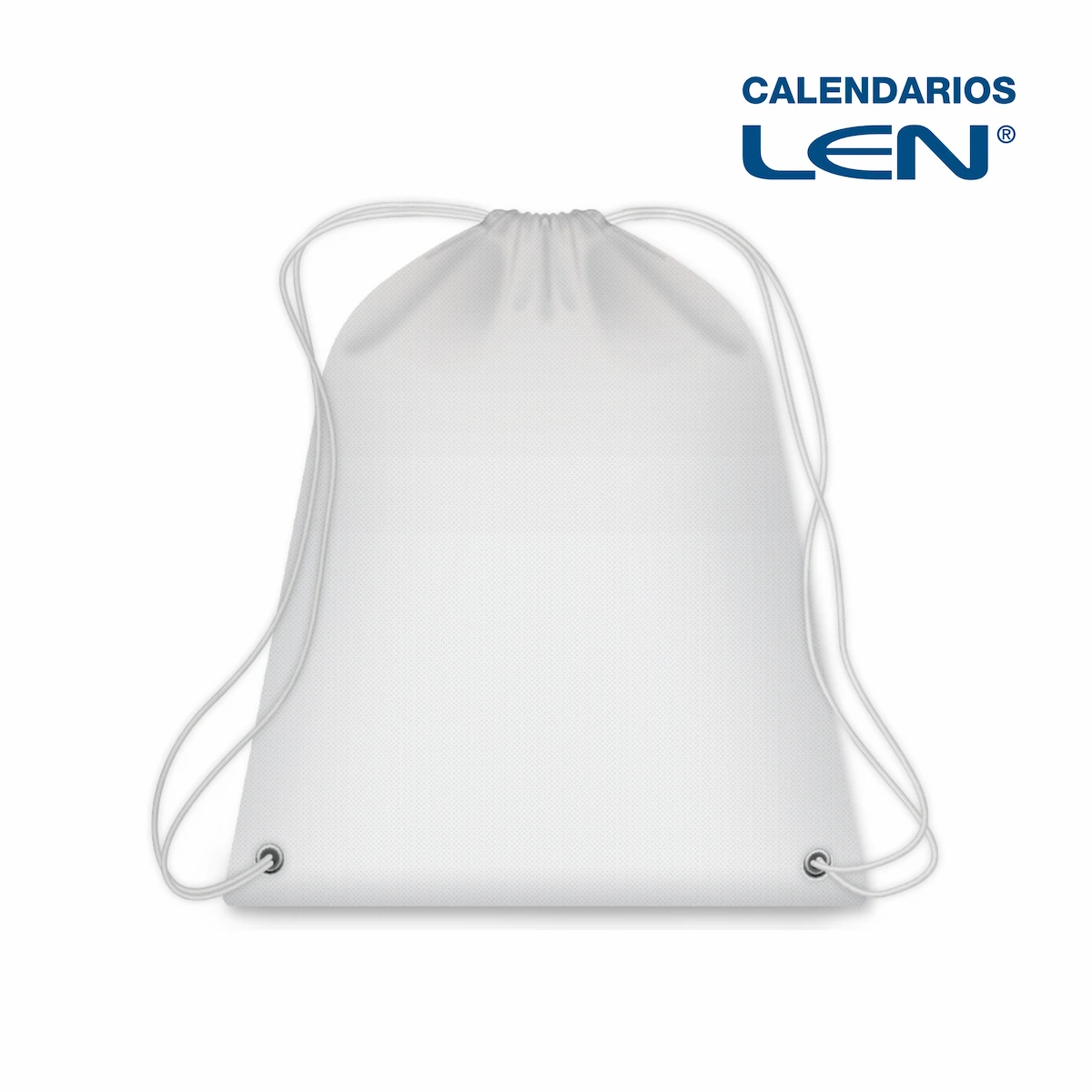 Mochila con cordón de r-pet non woven de 43×35 cm de la línea LEN, pensada para campañas promocionales, empaque comercial y personalización de marca.