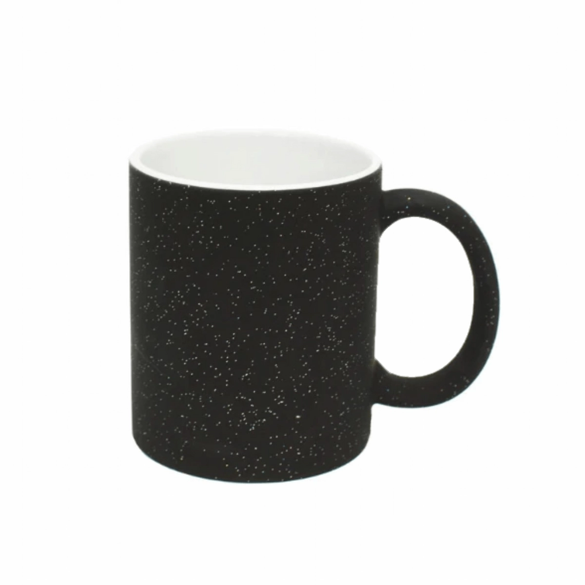 Taza mágica con acabado glitter y recubrimiento sublimable.
