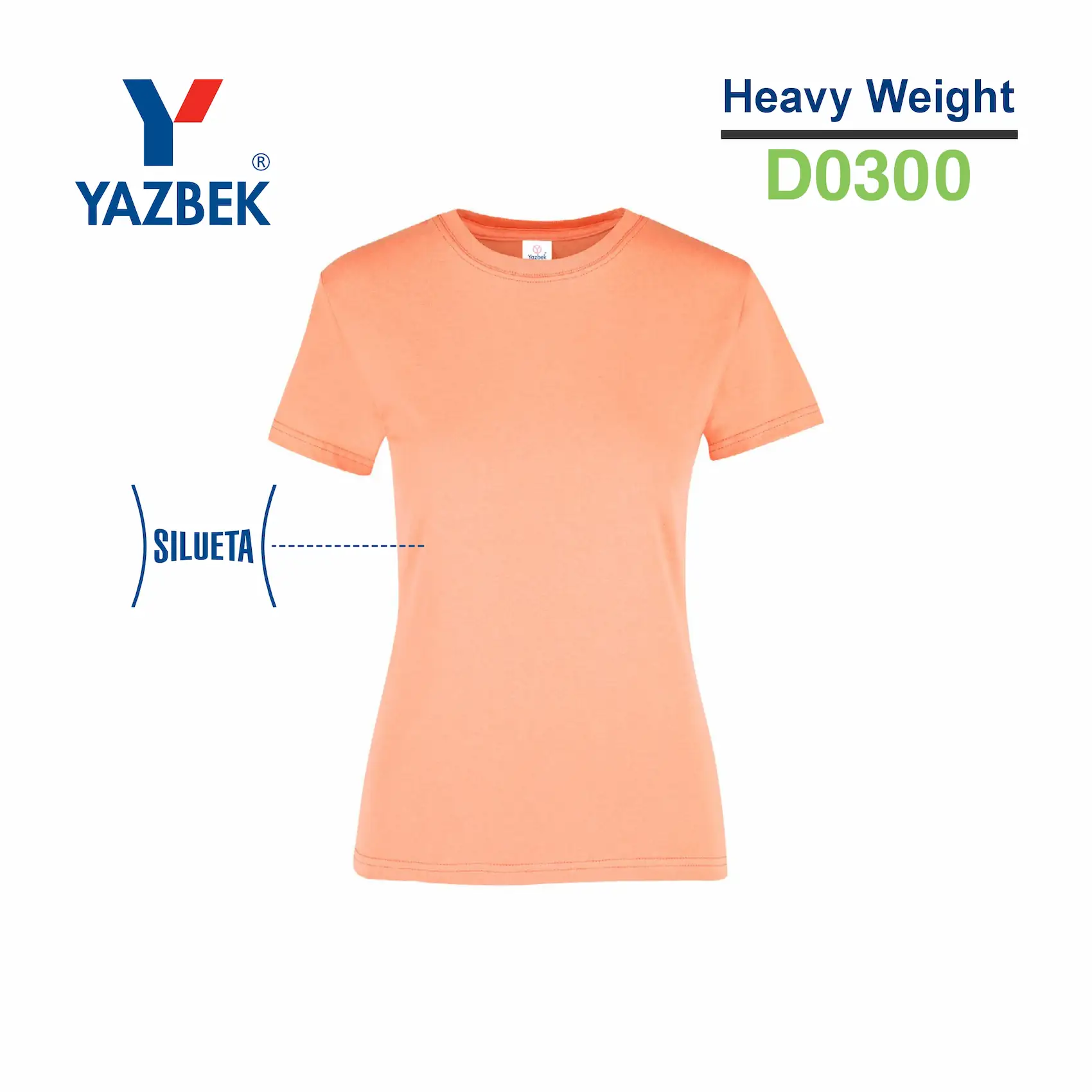 Yazbek D0300 Playera Peso Completo Cuello Redondo Manga Corta con Silueta para Dama es una prenda original de la línea Heavy Weight de Yazbek, fabricada en Chifón con composición 100% Algodón y peso de 195 gr/m2. Por su construcción y presentación, es una opción adecuada para uniforme, personalización textil y proyectos promocionales.