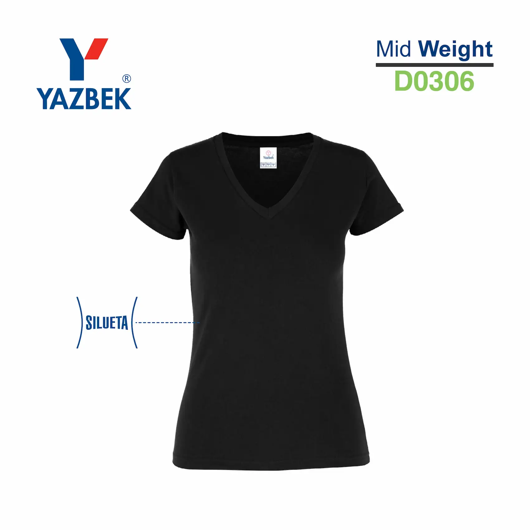 Yazbek D0306 Playera Cuello V Manga Corta con Silueta para Dama en tejido Chifón, 100% Algodón, peso 155 gr/m2, disponible en CH, M, G, EG. Línea Mid Weight de Yazbek.