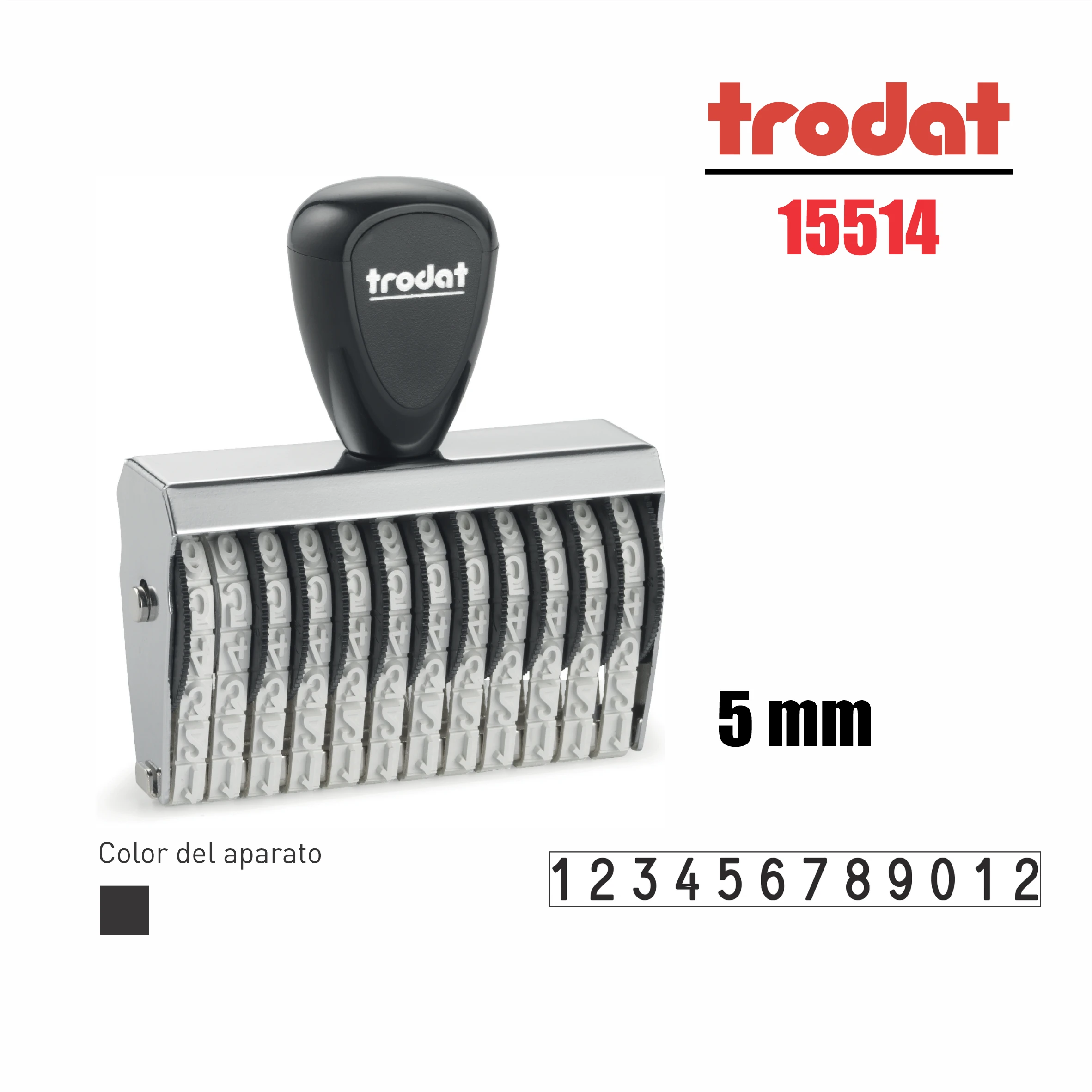 Sello numerador manual Trodat Classic 15514 con 14 bandas y caracteres de 5 mm, ideal para numeración manual clara en documentos, controles y procesos administrativos.