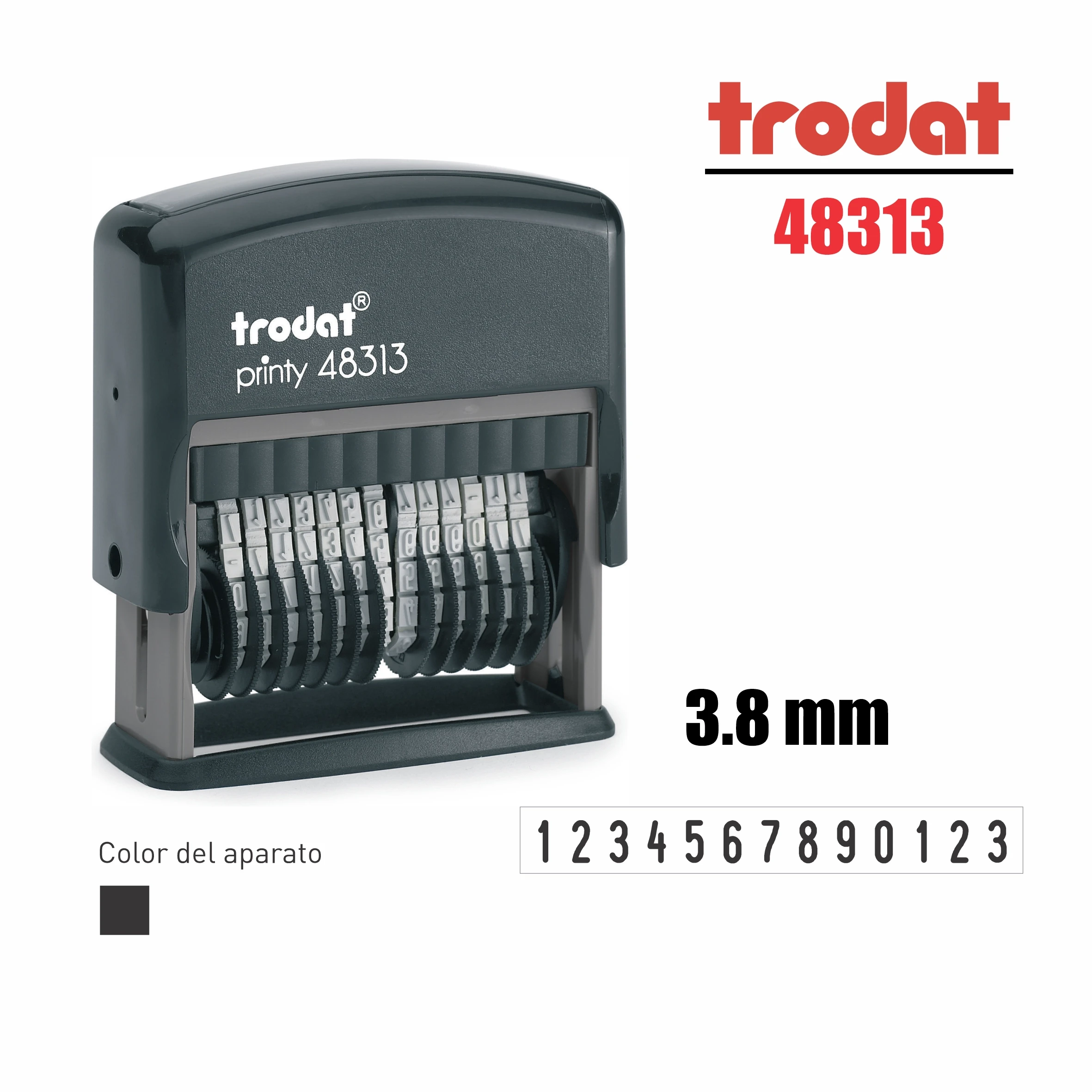 Sello de texto autoentintable Trodat Printy 48313. Tamaño: 3.8 mm. Personalizable.